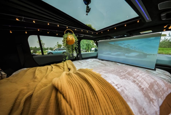 此次盲订权益的核心——行业唯一的原厂电动举升车顶,打开后可将车内高度直接增加36厘米,是同级别中唯一能让用户在铺上床垫后依然可以坐直身体的设计,彻底告别了传统车内露营的压抑感。篷布采用与福特敞篷车同款的防泼水材质,并能联动雨量传感器,在下雨时自动关闭。